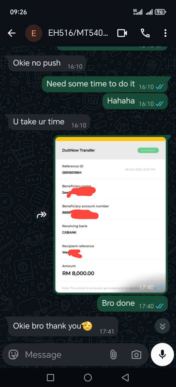 Once approved, the cash is transferred directly to your Malaysian bank account instantly.